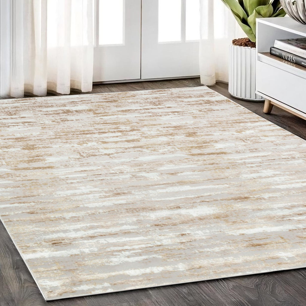 Add great coloration and comfortable texture to your space with this 4-foot x 6-foot beige abstract washable non skid area rug. This rectangle shaped rug features a abstract design in beige to give it visual interest. A classic shape marries with good looking design for your space the coloring of this rug adds a delightfully neutral tone to your home and will easily match with most any decor. Area rugs help to give warmth and sense of home to your space. 48-inch H x 72-inch W x 0.2-inch D