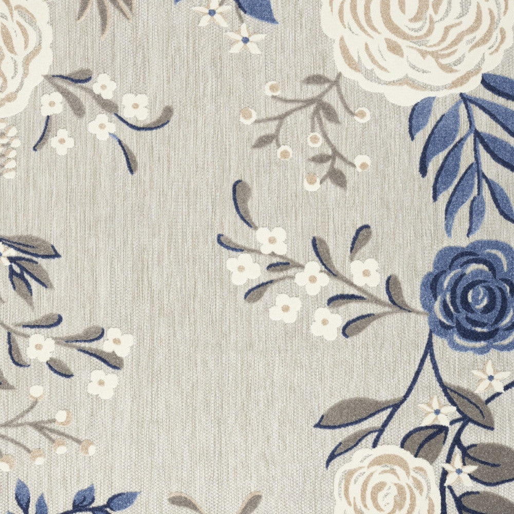 4' X 6' Blue And Grey Floral Stain Resistant Non Skid Area Rug