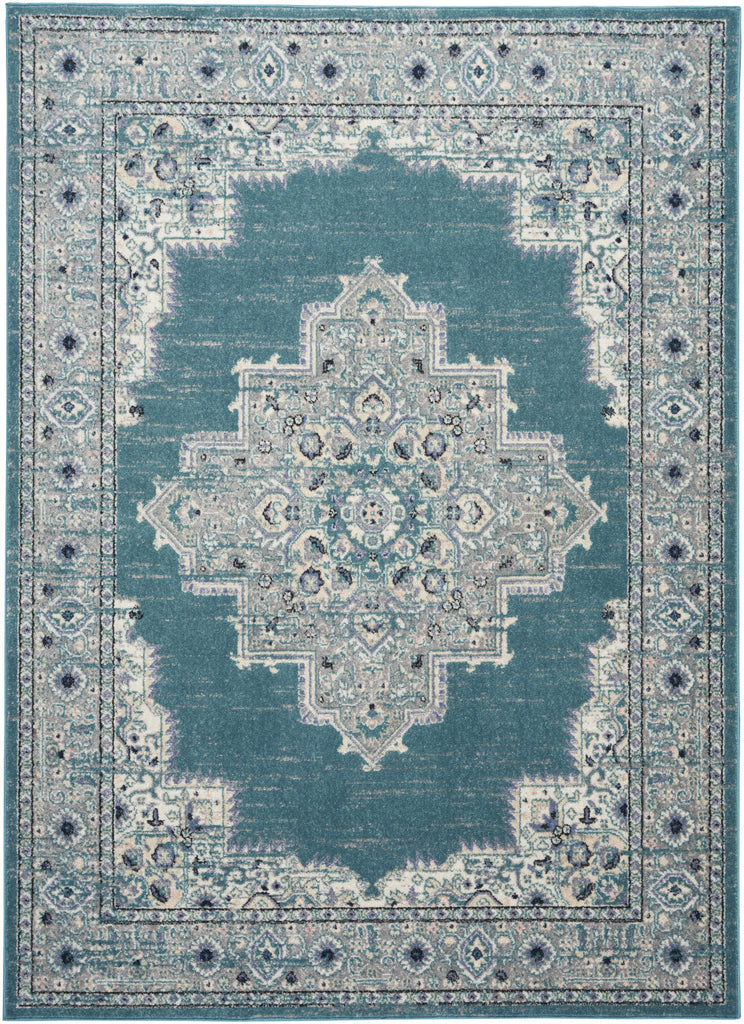 Add some artistry to your room with this 5' x 7' aqua floral power loom distressed area rug. This rectangle shaped rug features a floral design in aqua to give it visual interest. A classic shape marries with good looking design for your space This superior Turkish rug represents the highest quality and is built to last. Place this area rug against a hardwood or tile floor and it will enliven your living space with style and sophistication. .50" H x 63.00" W x 87.00" D