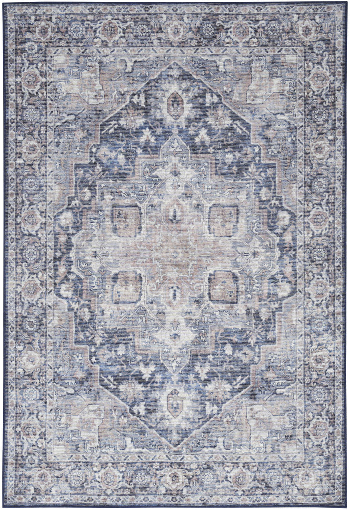 Set an inviting tone in your space with this 5' x 7' blue and pink floral power loom distressed washable area rug. This rectangle shaped rug features a floral design in blue and pink to give it visual interest. A classic shape marries with good looking design for your space This superior Turkish rug represents the highest quality and is built to last. Area Rugs help to give warmth and sense of home to your space. .28" H x 63.00" W x 87.00" D