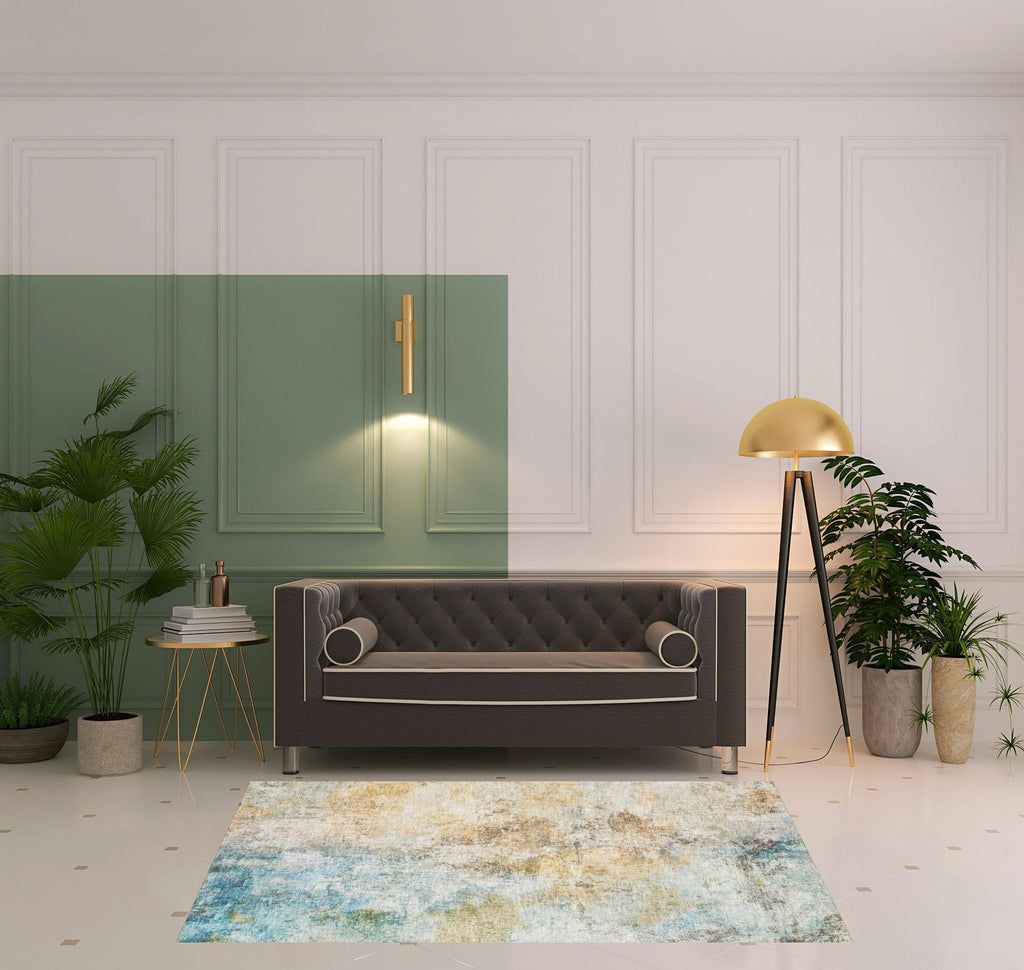 Add great coloration and comfortable texture to your space with this 5' x 7' blue and yellow abstract power loom stain resistant area rug. This rectangle shaped rug features a abstract design in blue and yellow to give it visual interest. A classic shape marries with good looking design for your space Ideal for spaces with kids and pets, this rug is stain resistant to help repel stains and spilled liquids. Area Rugs help to give warmth and sense of home to your space. 0.11" H x 59.84" W x 83.86" D