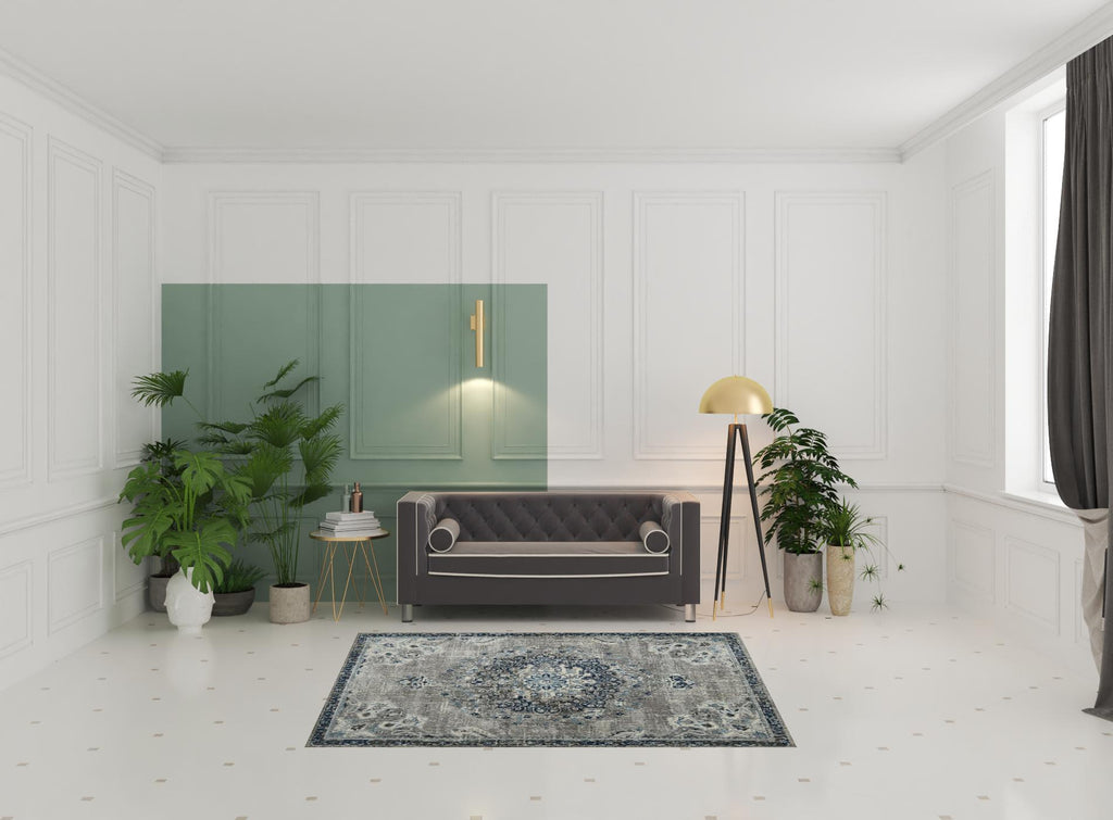 Add some artistry to your room with this 5-foot x 7-foot teal blue medallion power loom area rug. This rectangle shaped rug features a medallion design in teal blue to give it visual interest. A classic shape marries with good looking design for your space Ideal for spaces with kids and pets, this rug is stain resistant to help repel stains and spilled liquids. Area Rugs help to give warmth and sense of home to your space. 0.38-inch H x 63-inch W x 90-inch D