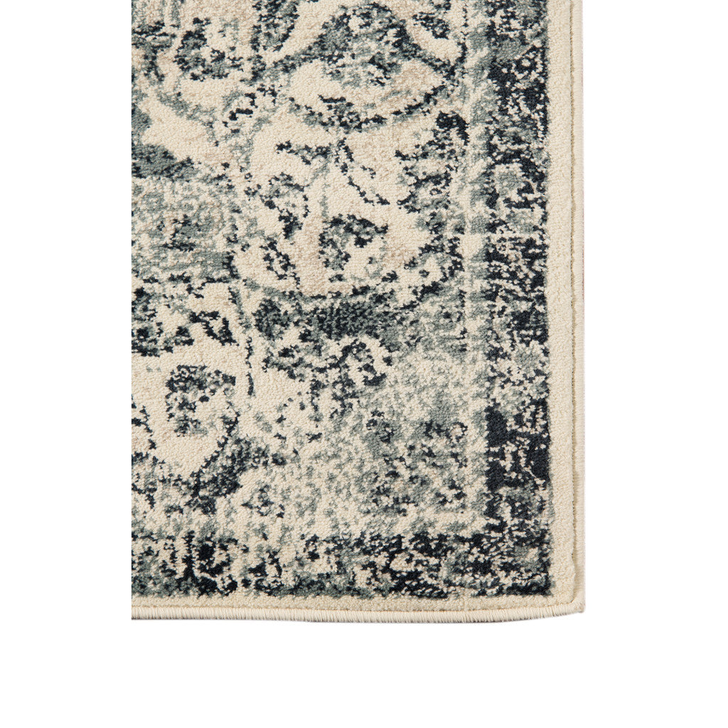 5' x 8' Beige and Blue Medallion Power Loom Area Rug