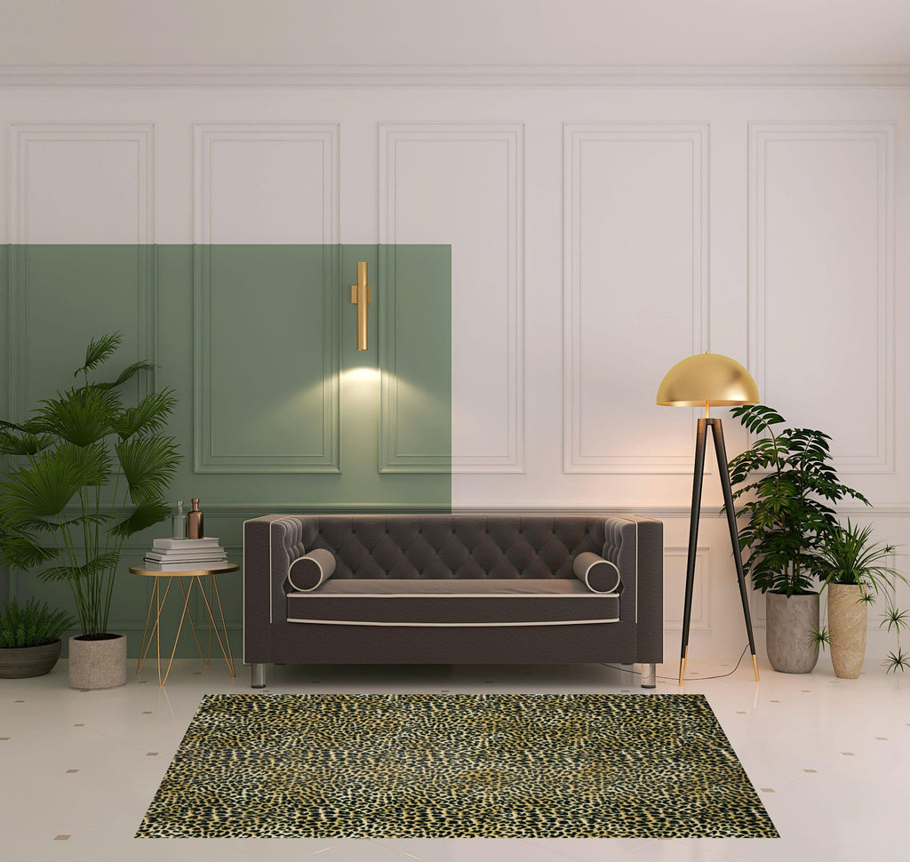 5' X 8' Black and Gold Leopard Print Shag Handmade Non Skid Area Rug