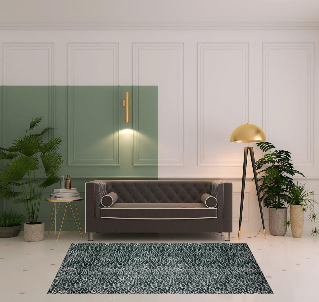 This 5' x 8' black animal print shag handmade non skid area rug, is a great way to add warmth to a room. This rectangle shaped rug features a animal print design in black to give it visual interest. A classic shape marries with good looking design for your space The coloration of this rug infuses an updated and modern vibe into your space. The retro shag construction of this luxurious rug will provide a soft and comfortable barrier to color tile and hardwood floors. Place this area rug against a hardwood or tile floor and it will enliven your living space with style and sophistication. 0.86" H x 60" W x 90" D
