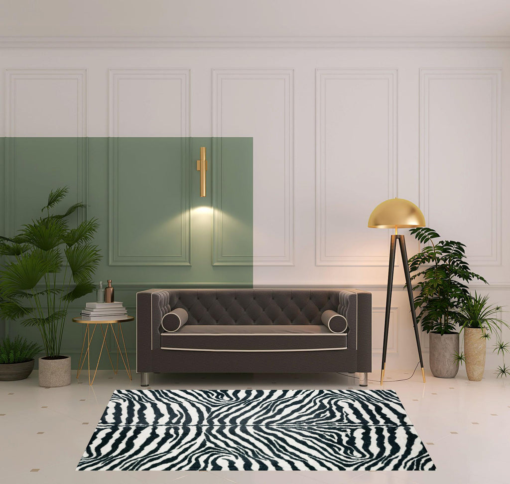 Add great coloration and comfortable texture to your space with this 5' x 8' Black and White Zebra Print Shag Handmade Non Skid Area Rug. This rectangle shaped rug features a animal print design in black to give it visual interest. A classic shape marries with good looking design for your space The coloration of this rug infuses an updated and modern vibe into your space. The retro shag construction of this luxurious rug will provide a soft and comfortable barrier to color tile and hardwood floors. Place this area rug against a hardwood or tile floor and it will enliven your living space with style and sophistication. 0.86" H x 60" W x 90" D