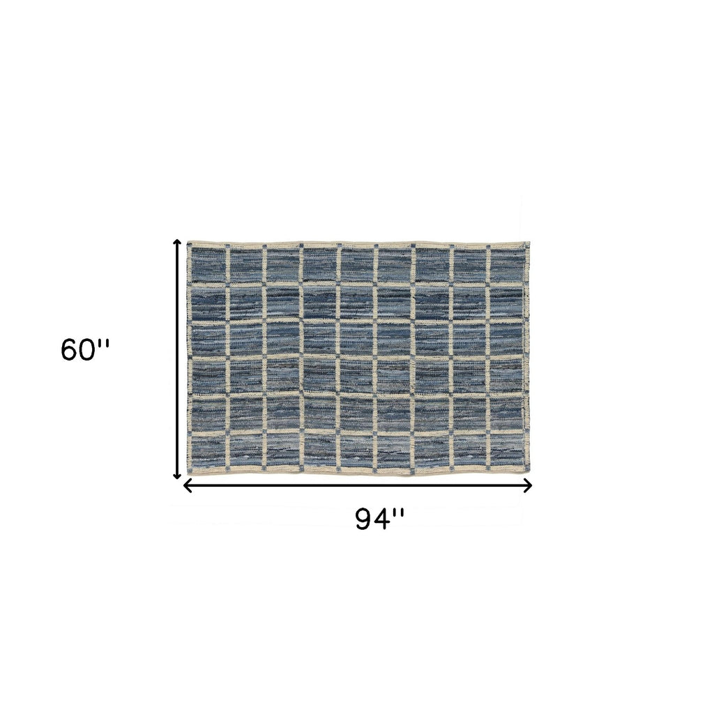 5' X 8' Blue And Gray Dhurrie Area Rug