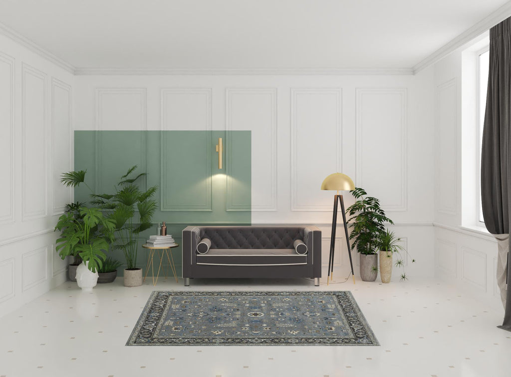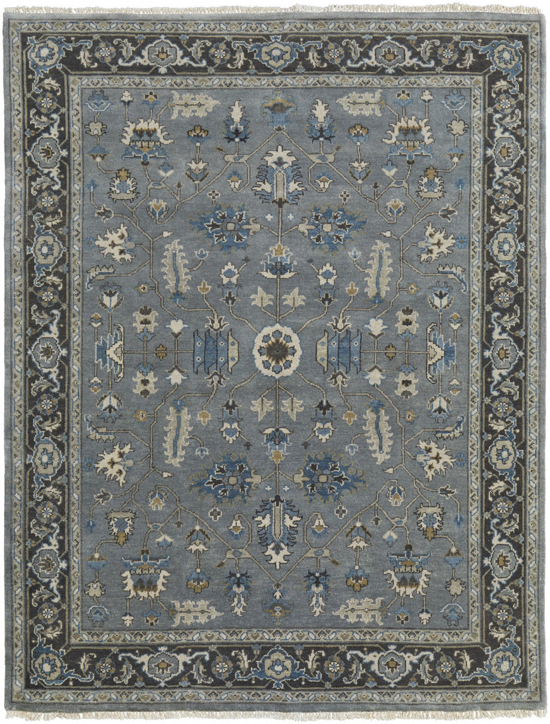 This 5' x 8' blue gray and taupe wool floral hand knotted stain resistant area rug, is a great way to add warmth to a room. This rectangle shaped rug features a floral design in blue gray and taupe to give it visual interest. A classic shape marries with good looking design for your space Ideal for spaces with kids and pets, this rug is stain resistant to help repel stains and spilled liquids. Crafted by skilled artisans, this hand knotted rug is genuine and unique. No two will be exactly alike. Area Rugs help to give warmth and sense of home to your space. 0.37" H x 66" W x 102" D
