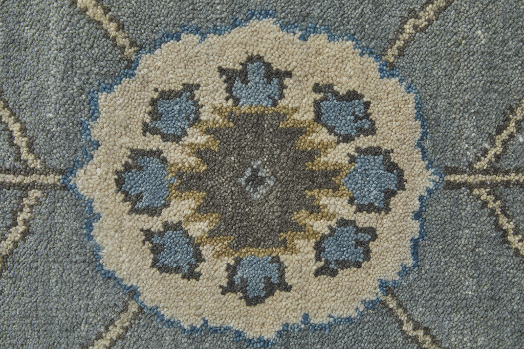5' X 8' Blue Gray And Taupe Wool Floral Hand Knotted Stain Resistant Area Rug