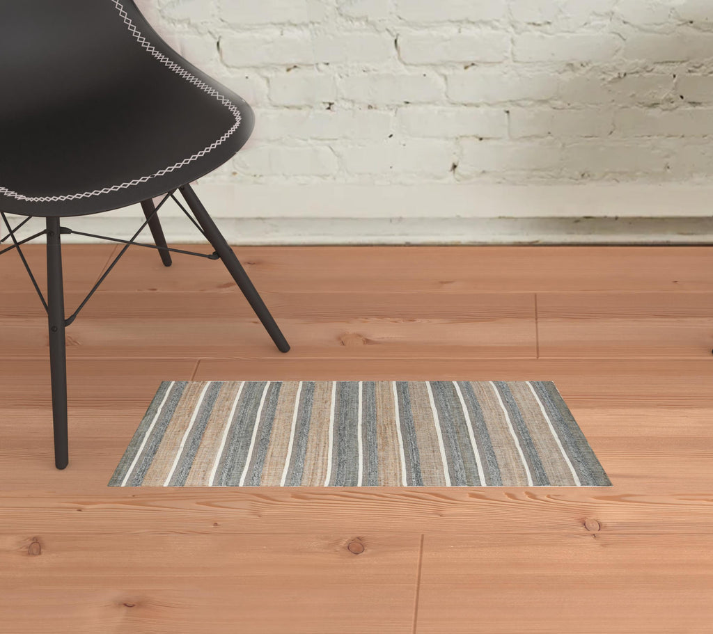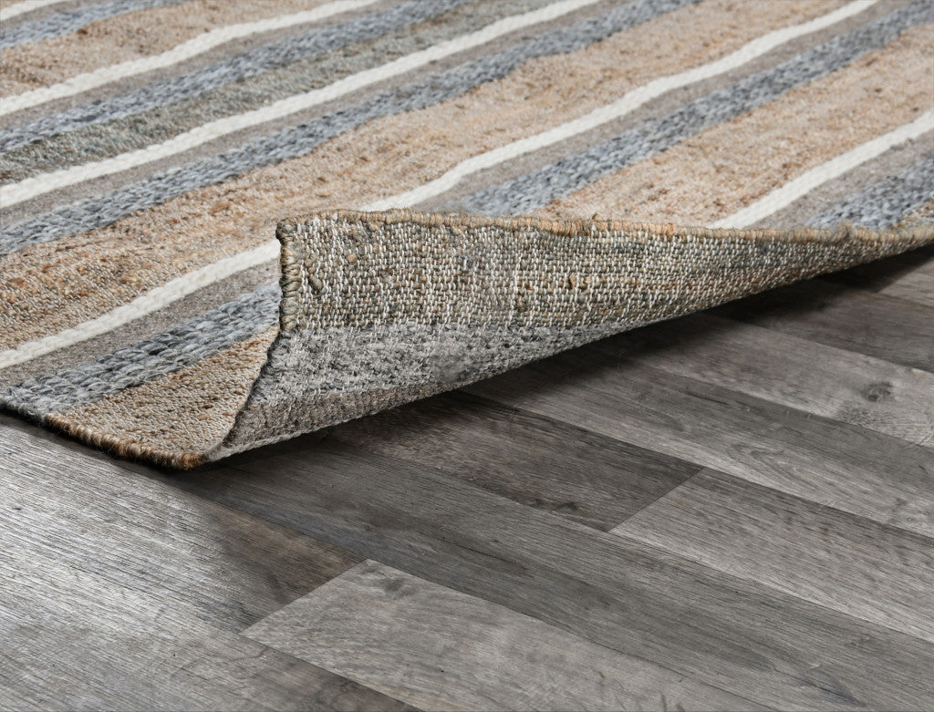 5' X 8' Blue Striped Hand Woven Area Rug