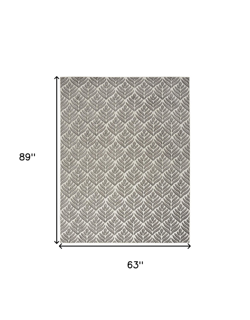 5' X 8' Charcoal Floral Stain Resistant Non Skid Area Rug