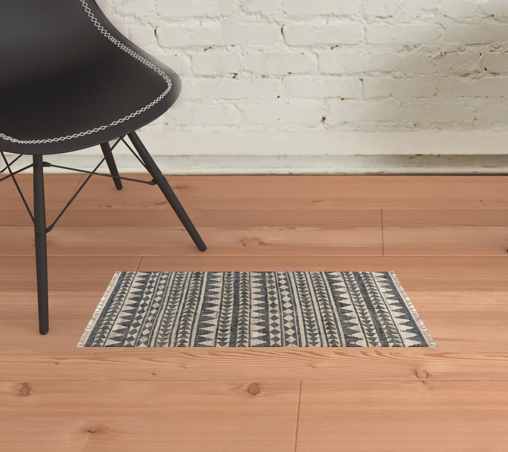 5' X 8' Charcoal Geometric Hand Woven Area Rug