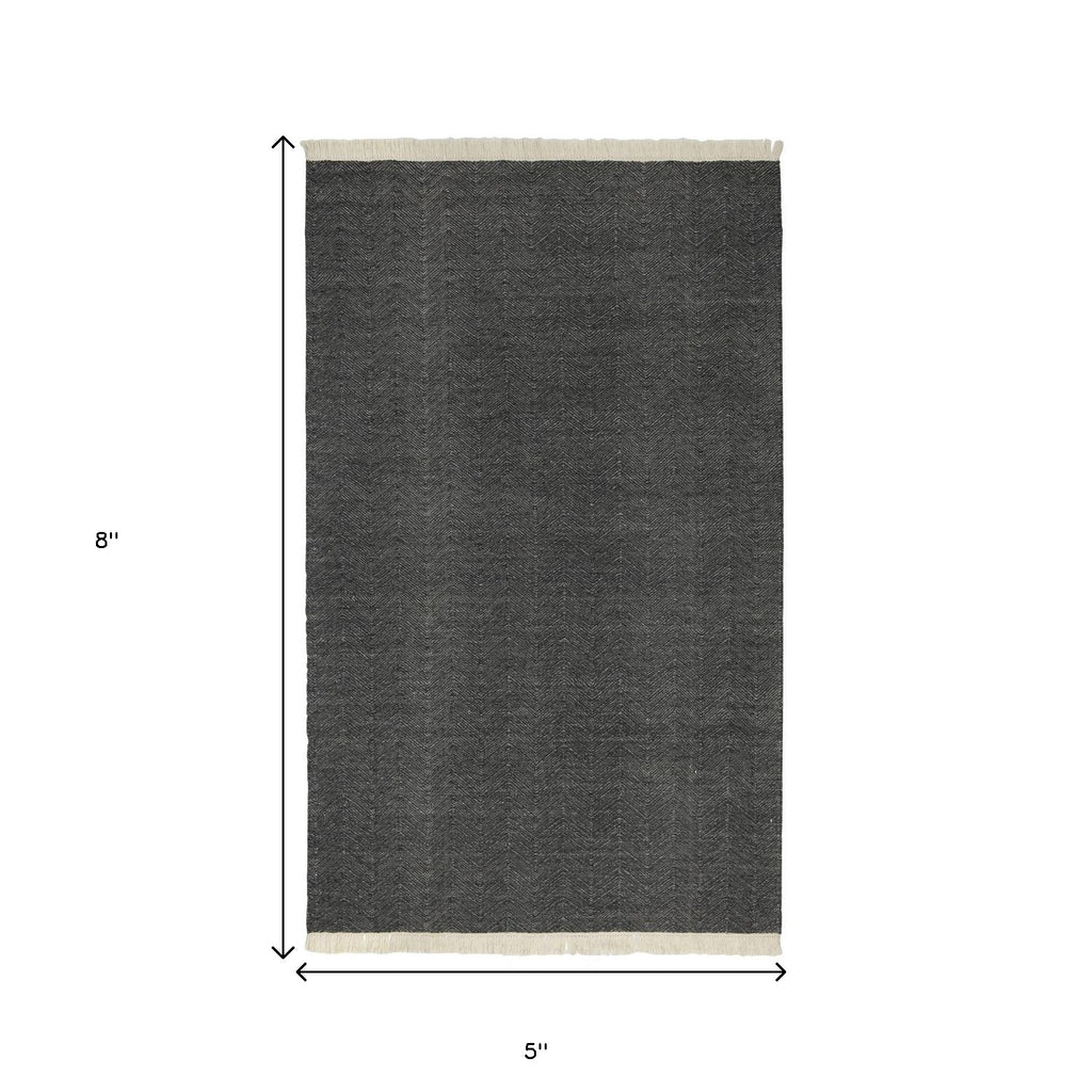 5' X 8' Ivory Chevron Hand Woven Area Rug