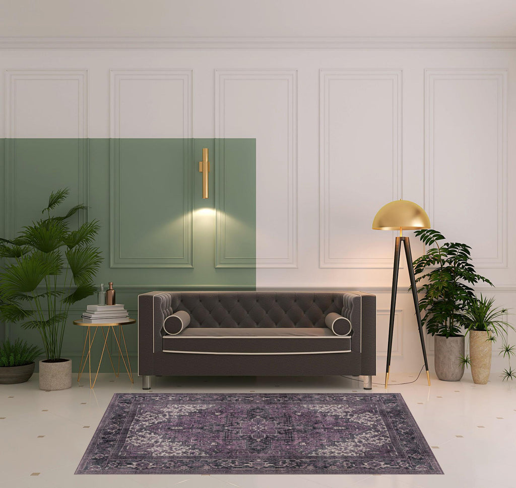 This 5' x 8' purple oriental distressed non skid area rug, is a great way to add warmth to a room. This rectangle shaped rug features a oriental design in purple to give it visual interest. A classic shape marries with good looking design for your space Area Rugs help to give warmth and sense of home to your space. 0.16" H x 60" W x 91" D