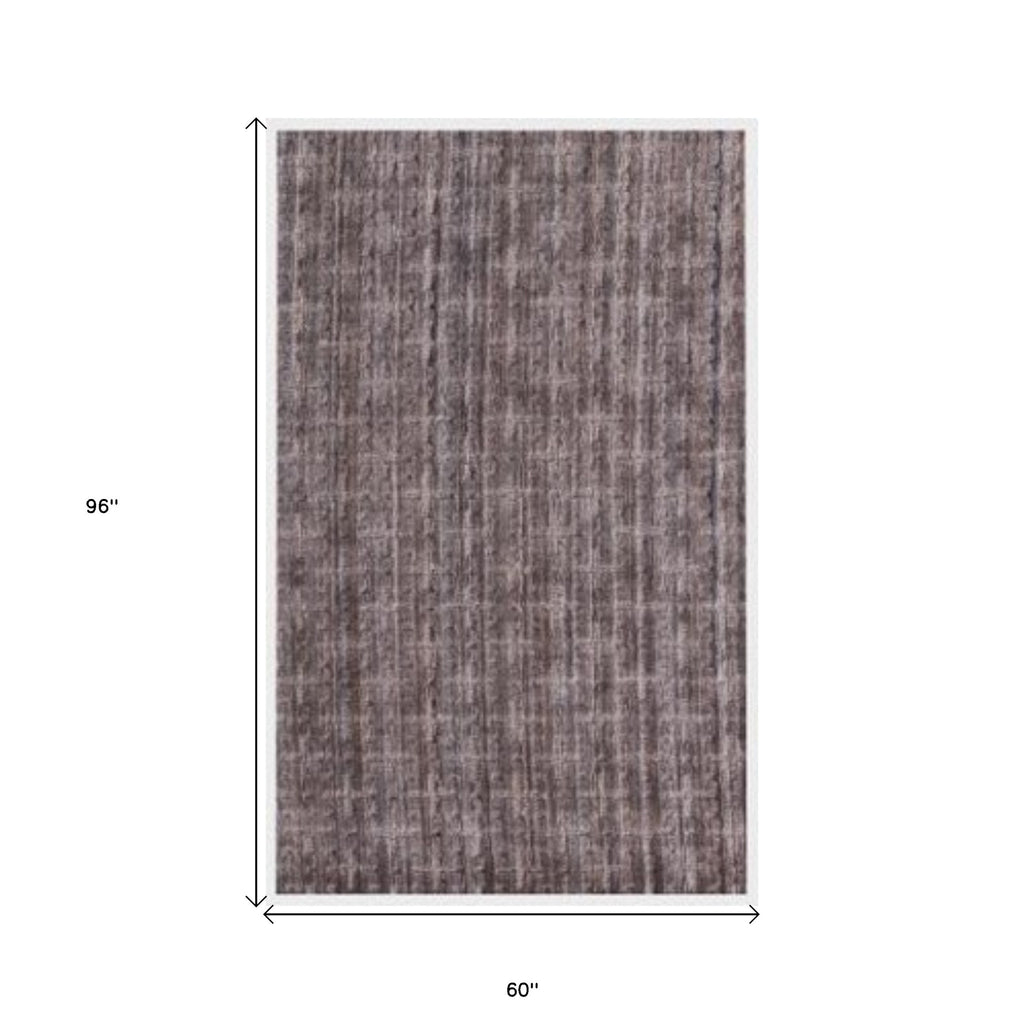 5' X 8' Rust And Tan Plaid Cross Hand Loomed Area Rug