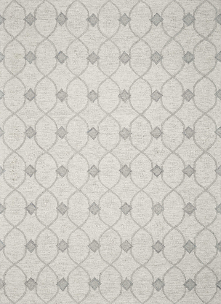 5'X7' Ivory Hand Tufted Wool Ogee Indoor Area Rug