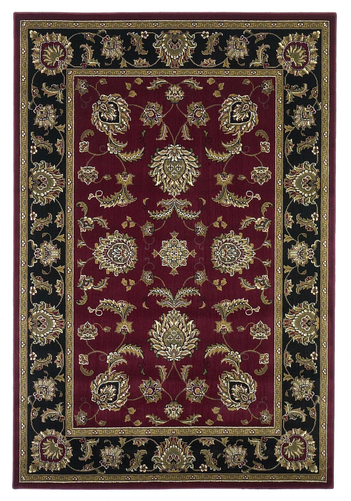 5'X8' Red Black Machine Woven Floral Traditional Indoor Area Rug