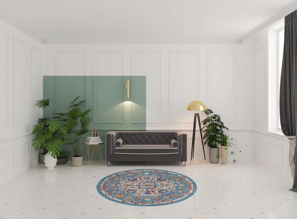 Add great coloration and comfortable texture to your space with this 6 feet blue round medallion power loom area rug. This geometric round shaped rug features a medallion pattern in blue that combines a good looking print with a unique and updated shape. The mix of shape, color, and design gives this rug refreshing visual interest. Ideal for spaces with kids and pets, this rug is stain resistant to help repel stains and spilled liquids. Place this area rug against a hardwood or tile floor and it will enliven your living space with style and sophistication. 0.38 inches H x 79 inches W x 79 inches D