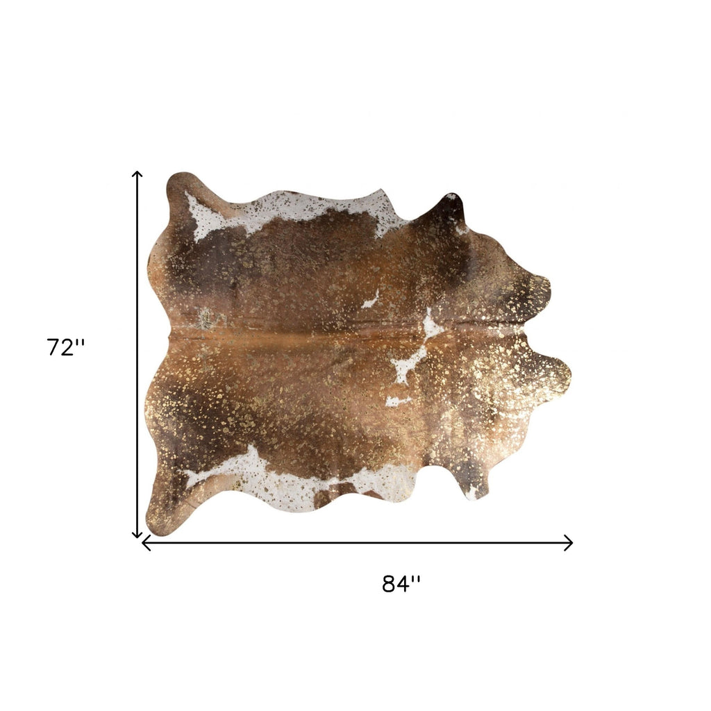 6' X 7' Brown White And Gold Natural Cowhide Area Rug