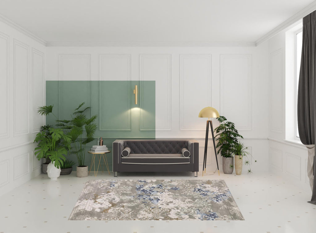 This 6' x 9' grey blue ivory brown and navy abstract power loom stain resistant area rug, is a great way to add warmth to a room. This rectangle shaped rug features a abstract design in grey blue ivory brown and navy to give it visual interest. A classic shape marries with good looking design for your space Ideal for spaces with kids and pets, this rug is stain resistant to help repel stains and spilled liquids. Area Rugs help to give warmth and sense of home to your space. 1" H x 78.74" W x 114.17" D