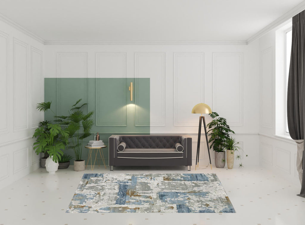 Add some artistry to your room with this 6' x 9' grey blue navy ivory and brown abstract power loom stain resistant area rug. This rectangle shaped rug features a abstract design in grey blue navy ivory and brown to give it visual interest. A classic shape marries with good looking design for your space Ideal for spaces with kids and pets, this rug is stain resistant to help repel stains and spilled liquids. Place this area rug against a hardwood or tile floor and it will enliven your living space with style and sophistication. 1" H x 78.74" W x 114.17" D