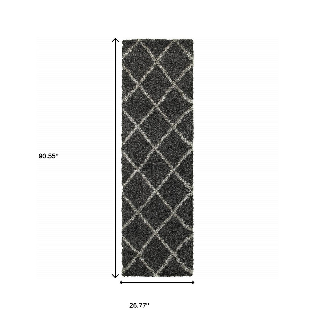 6' X 9' Grey Ivory And Silver Geometric Shag Power Loom Stain Resistant Area Rug