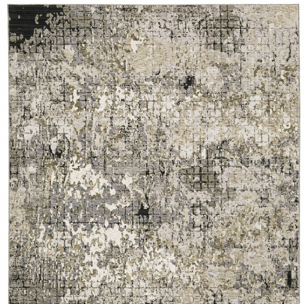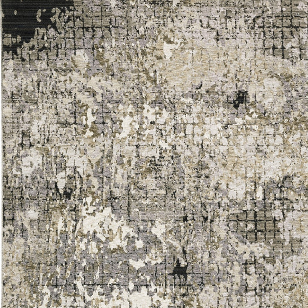 6' X 9' Grey Ivory Beige Charcoal Black Tan And Brown Abstract Power Loom Stain Resistant Area Rug