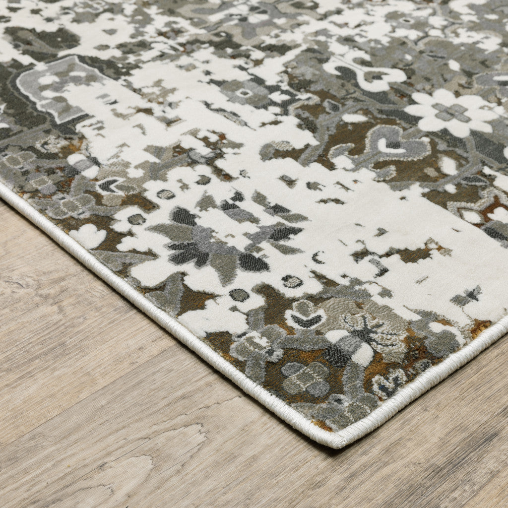6' X 9' Ivory Grey Charcoal Rust Gold And Brown Oriental Power Loom Stain Resistant Area Rug