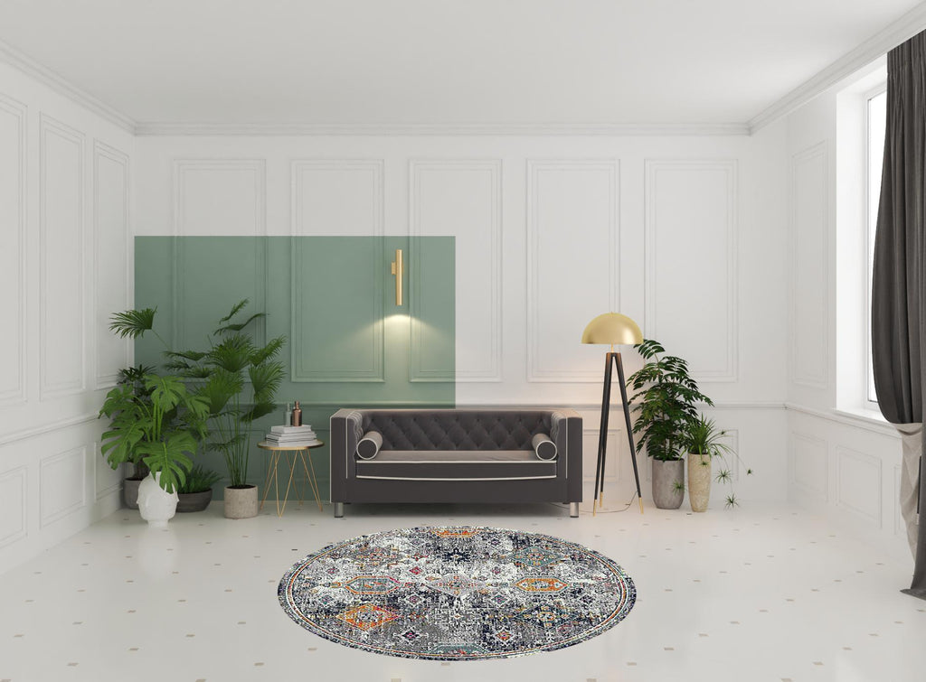 Add great coloration and comfortable texture to your space with this 7-foot blue and orange round geometric power loom area rug. This geometric round shaped rug features a geometric pattern in blue and orange that combines a good looking print with a unique and updated shape. The mix of shape, color, and design gives this rug refreshing visual interest. Ideal for spaces with kids and pets, this rug is stain resistant to help repel stains and spilled liquids. Place this area rug against a hardwood or tile floor and it will enliven your living space with style and sophistication. 0.38-inch H x 90-inch W x 90-inch D