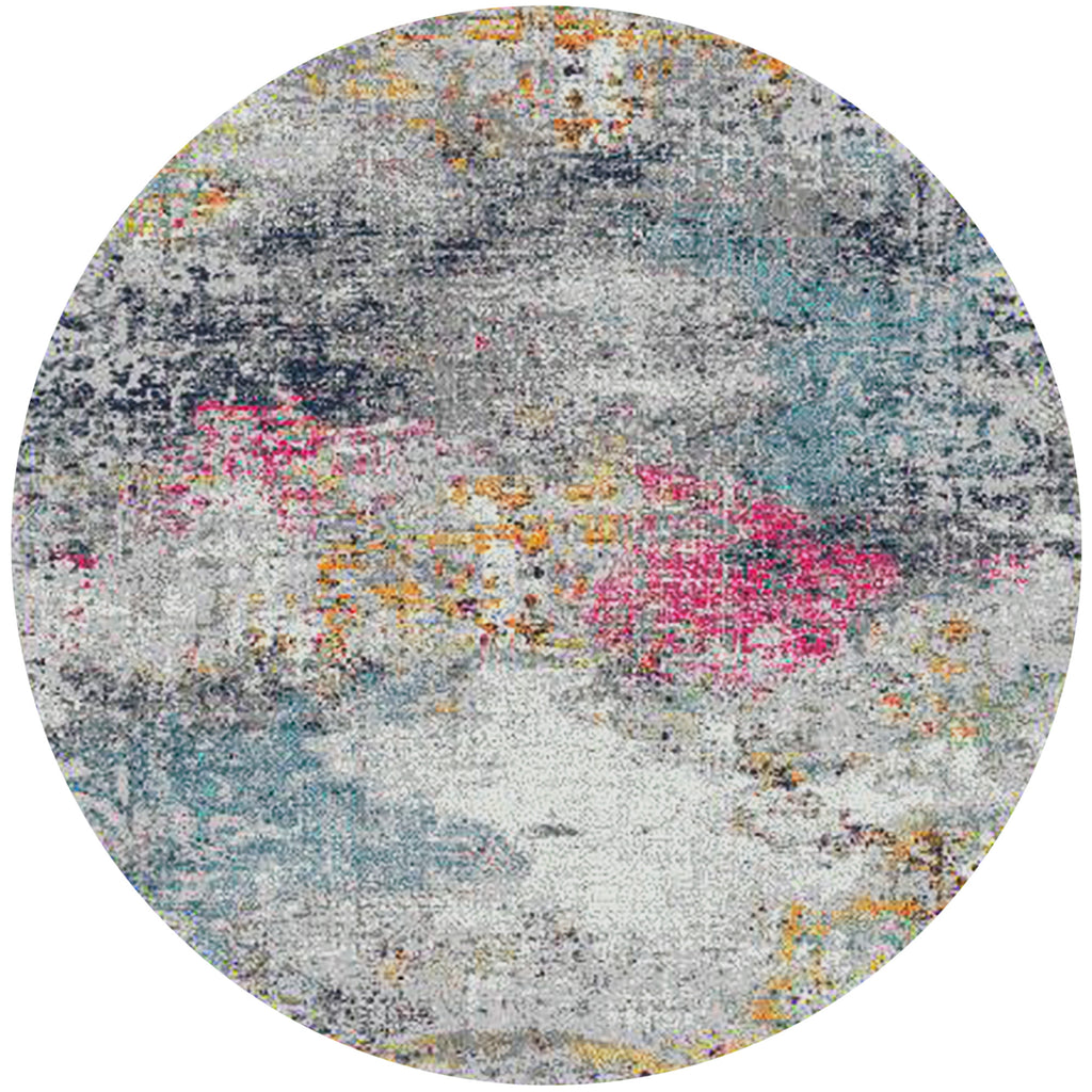 This 7-foot blue and pink round abstract power loom area rug, is a great way to add warmth to a room. This geometric round shaped rug features a abstract pattern in blue and pink that combines a good looking print with a unique and updated shape. The mix of shape, color, and design gives this rug refreshing visual interest. Ideal for spaces with kids and pets, this rug is stain resistant to help repel stains and spilled liquids. Area Rugs help to give warmth and sense of home to your space. 0.38-inch H x 90-inch W x 90-inch D