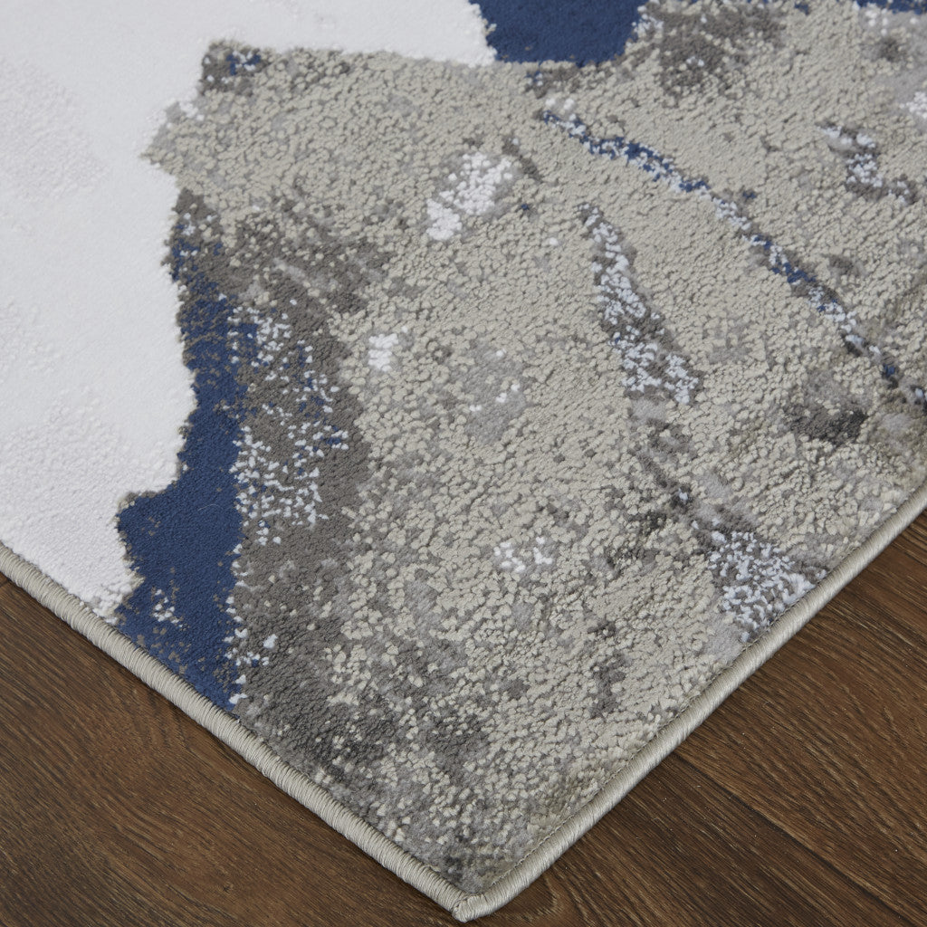 7' X 10' Blue Gray And White Abstract Area Rug