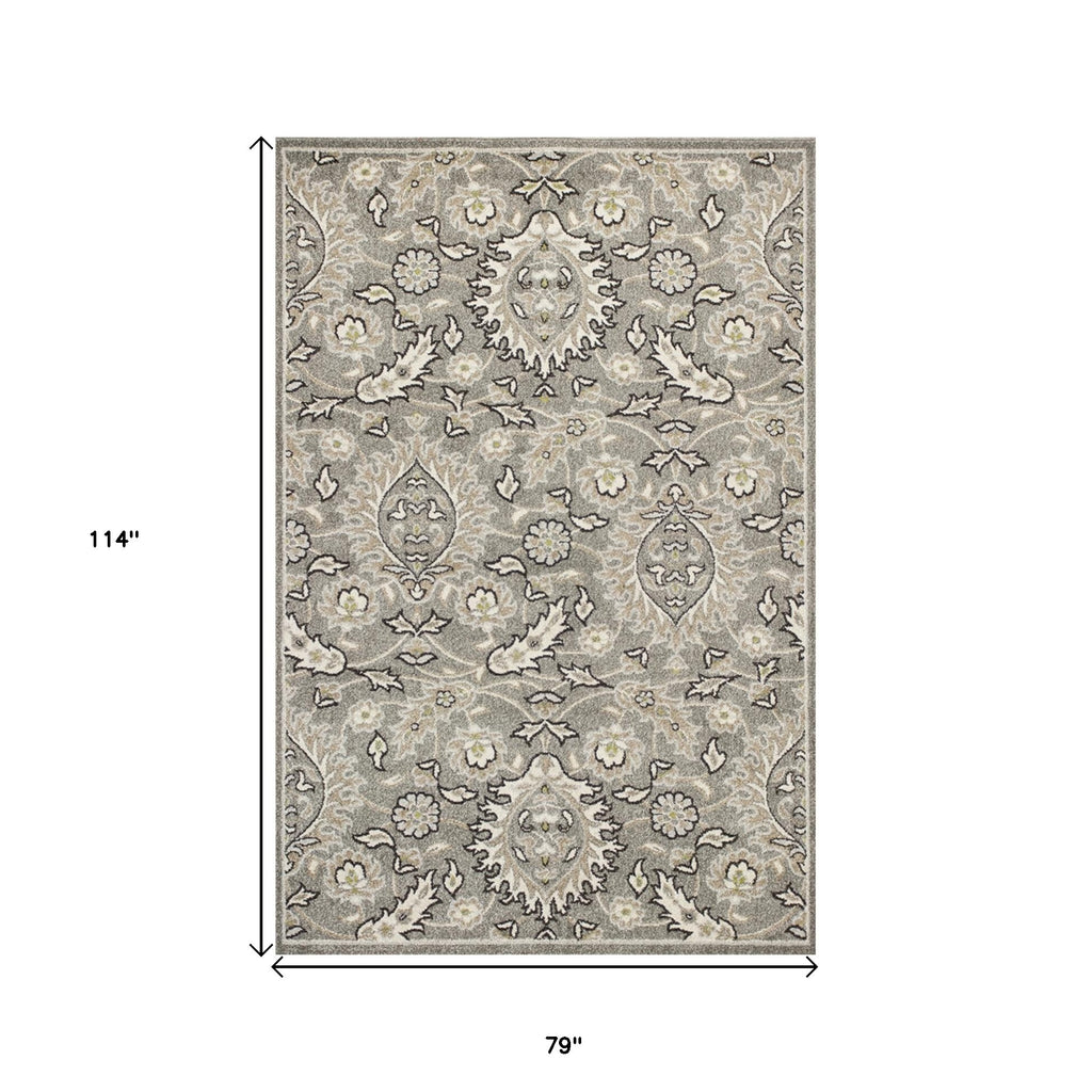 7' X 9' Grey Floral Vine Uv Treated Indoor Area Rug