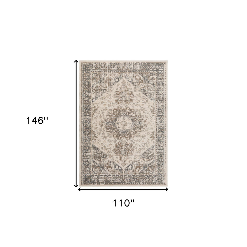 Set an inviting tone in your space with this 8 feet beige round medallion power loom area rug. This geometric round shaped rug features a medallion pattern in beige that combines a good looking print with a unique and updated shape. The mix of shape, color, and design gives this rug refreshing visual interest. The coloring of this rug adds a delightfully neutral tone to your home and will easily match with most any decor. Ideal for spaces with kids and pets, this rug is stain resistant to help repel stains and spilled liquids. Area Rugs help to give warmth and sense of home to your space. 0.32 inches H x 94 inches W x 94 inches D