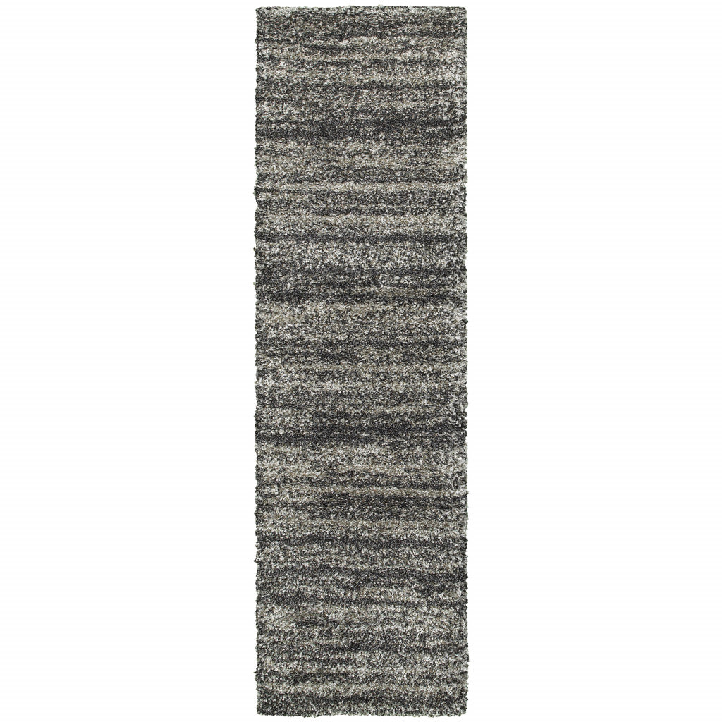 8' Black and Gray Geometric Shag Power Loom Runner Rug