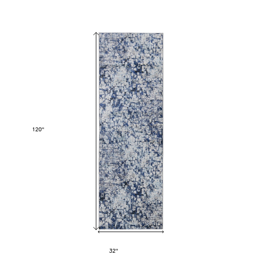 8' Blue and Ivory Abstract Power Loom Distressed Runner Rug