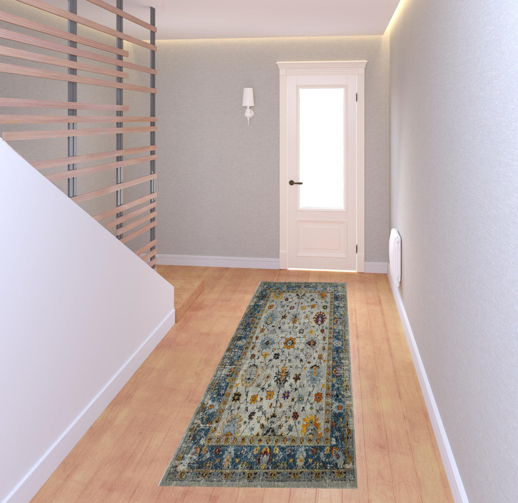 Add some artistry to your room with this 8-foot blue and orange floral power loom runner rug. This runner shaped rug features a floral design in blue and orange to give it visual interest. A classic shape marries with good looking design for your space Ideal for spaces with kids and pets, this rug is stain resistant to help repel stains and spilled liquids. Place this area rug against a hardwood or tile floor and it will enliven your living space with style and sophistication. 0.38-inch H x 31-inch W x 96-inch D
