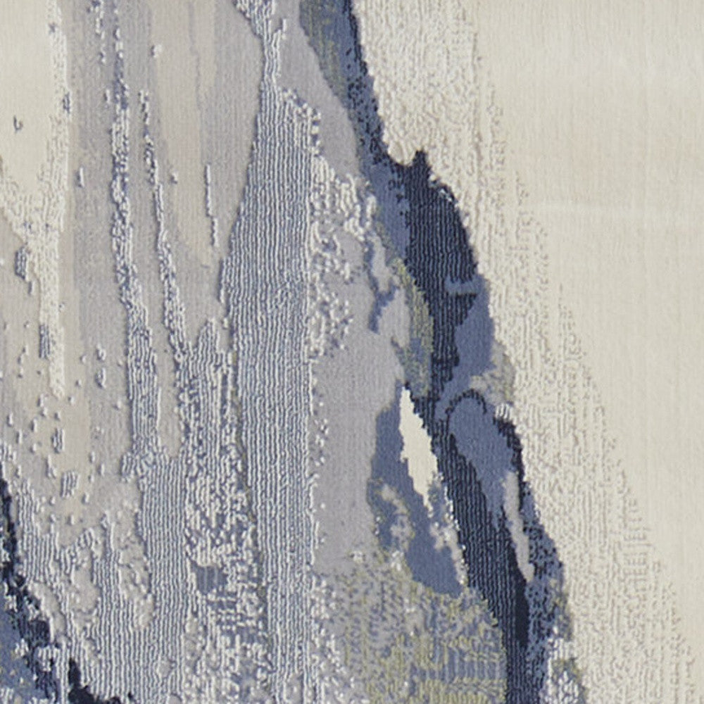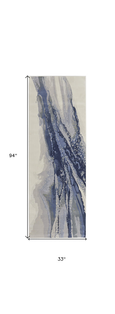 8' Blue Gray And Ivory Abstract Power Loom Runner Rug