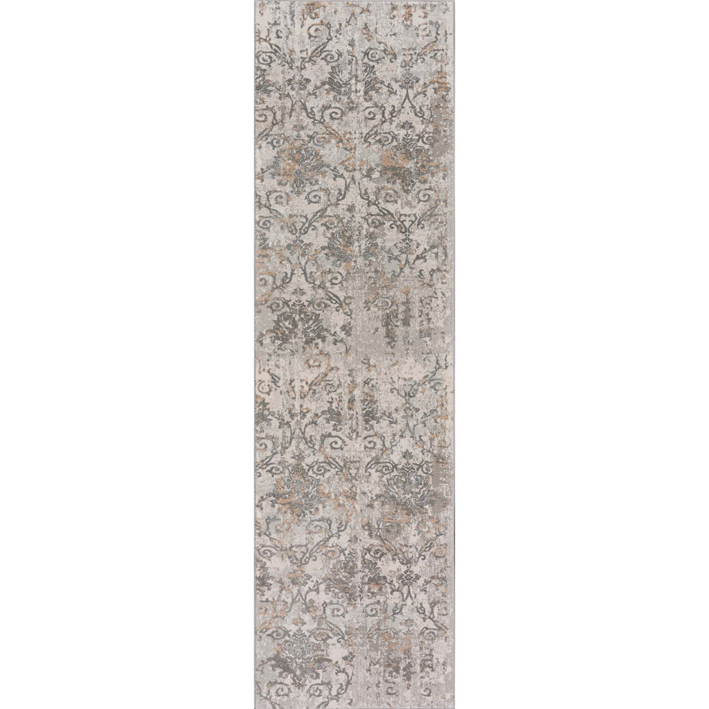 8' Cream Abstract Distressed Runner Rug