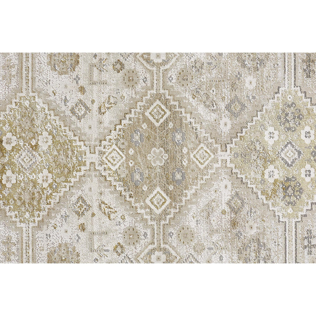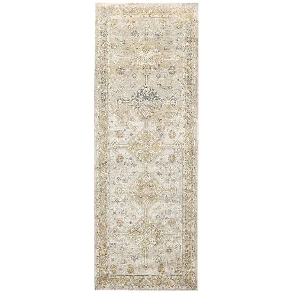 8' Gold and Ivory Floral Runner Rug