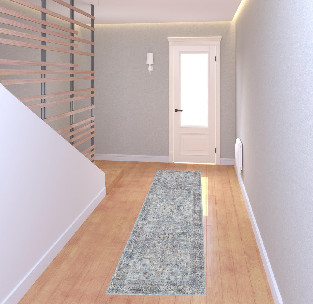 This 8' gray floral power loom distressed washable runner rug, is a great way to add warmth to a room. This runner shaped rug features a floral design in gray to give it visual interest. A classic shape marries with good looking design for your space The coloring of this rug adds a delightfully neutral tone to your home and will easily match with most any decor. This superior Turkish rug represents the highest quality and is built to last. Area Rugs help to give warmth and sense of home to your space. .28" H x 26.00" W x 96.00" D