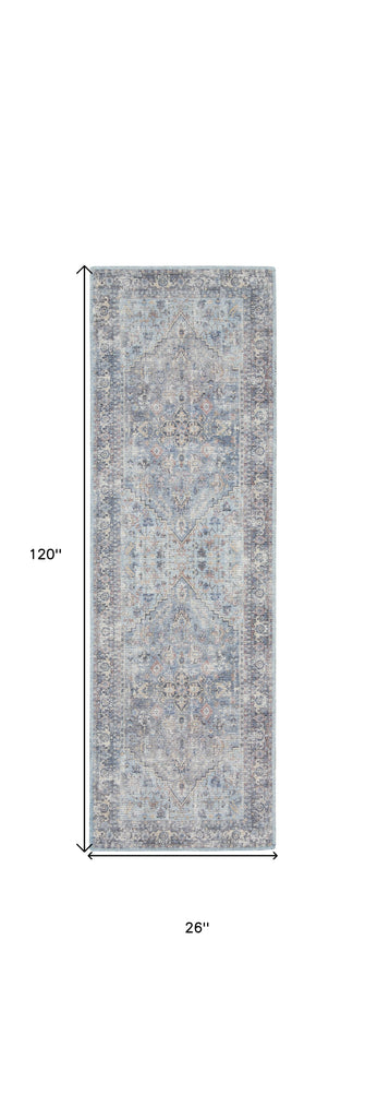 8' Gray Floral Power Loom Distressed Washable Runner Rug