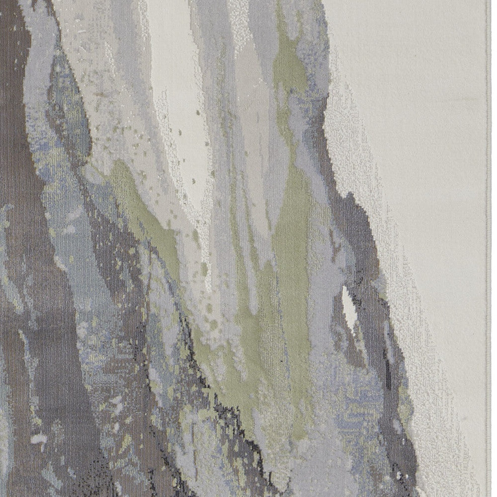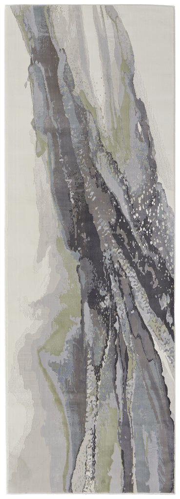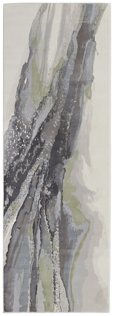 8' Green Purple And Ivory Abstract Power Loom Runner Rug