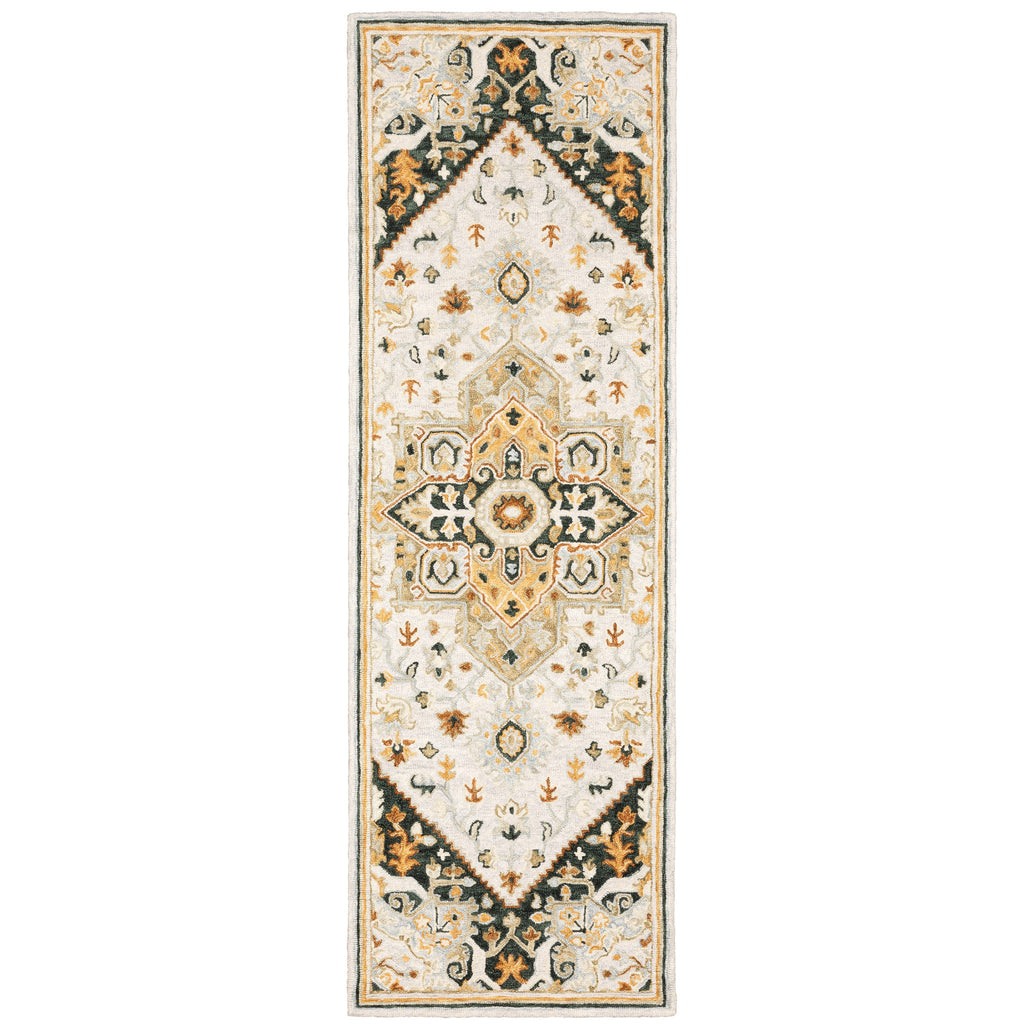 Add some artistry to your room with this 8-foot ivory and black oriental handmade runner rug. This runner shaped rug features a oriental design in ivory and black to give it visual interest. A classic shape marries with good looking design for your space ideal for spaces with kids and pets, this rug is stain resistant to help repel stains and spilled liquids. Place this area rug against a hardwood or tile floor and it will enliven your living space with style and sophistication. 0.39-inch H x 29.92-inch W x 95.67-inch D
