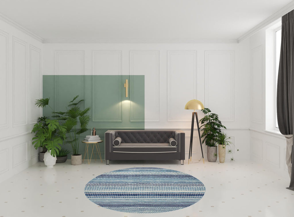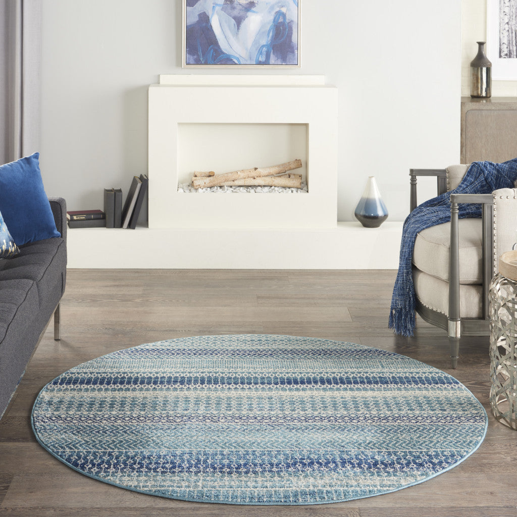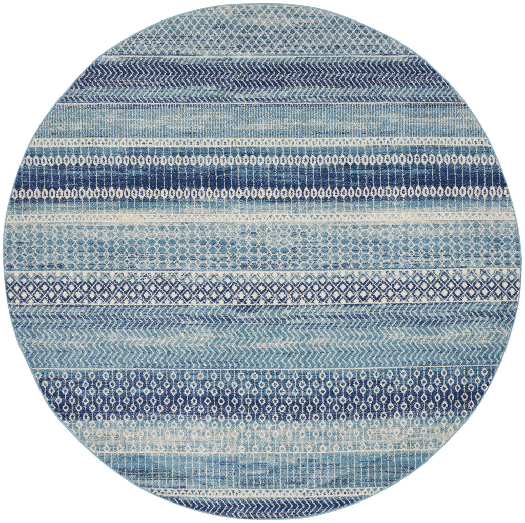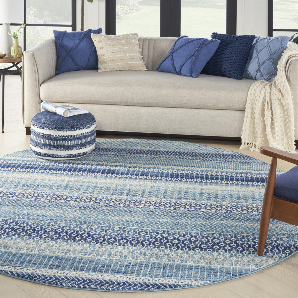 Add some artistry to your room with this 8' navy blue round floral power loom area rug. This geometric round shaped rug features a floral pattern in navy blue that combines a good looking print with a unique and updated shape. The mix of shape, color, and design gives this rug refreshing visual interest. Made in Turkey, this rug offers high quality combined with good looking designer sensibilities. Area Rugs help to give warmth and sense of home to your space. .50" H x 96.00" W x 96.00" D