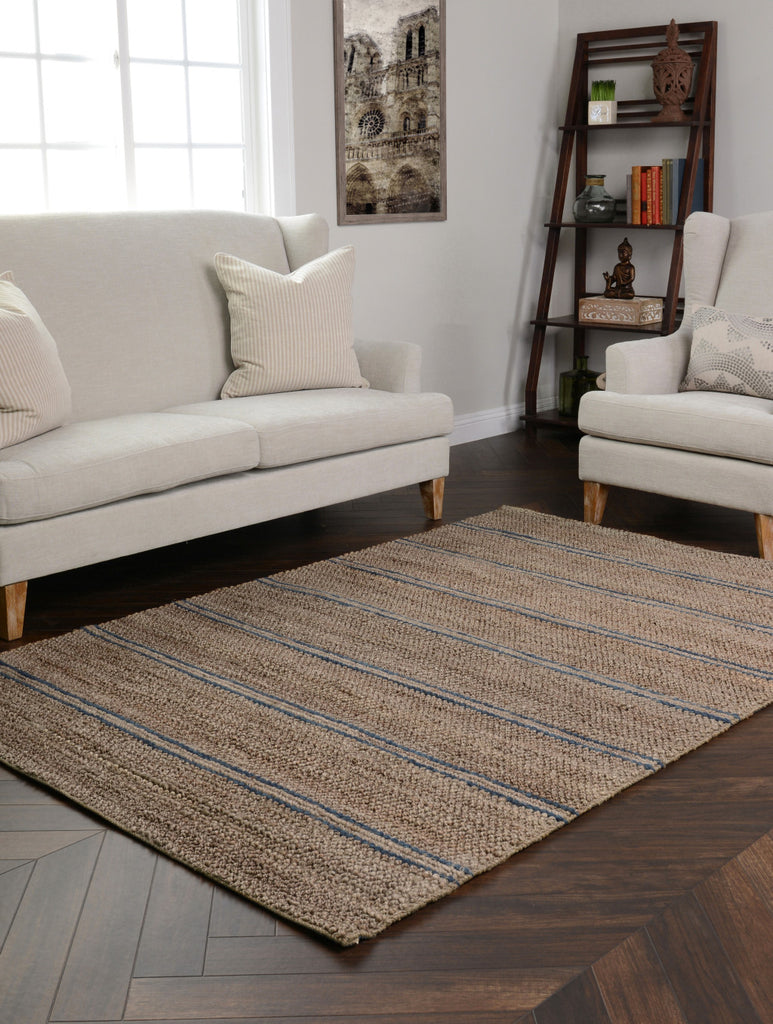 Add some artistry to your room with this 8' x 10' beige striped hand woven area rug. This rectangle shaped rug features a striped design in beige to give it visual interest. A classic shape marries with good looking design for your space The coloring of this rug adds a delightfully neutral tone to your home and will easily match with most any decor. Ideal for spaces with kids and pets, this rug is stain resistant to help repel stains and spilled liquids. Crafted by skilled artisans, this hand woven rug is genuine and unique. No two will be exactly alike. Area Rugs help to give warmth and sense of home to your space. 0.75" H x 96" W x 120" D