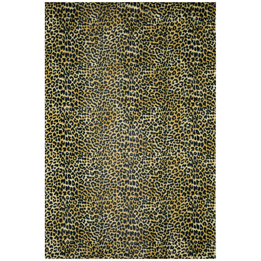 8' X 10' Black and Gold Leopard Print Shag Handmade Non Skid Area Rug