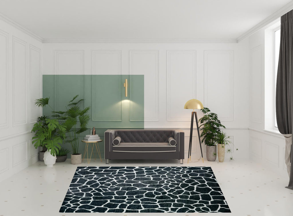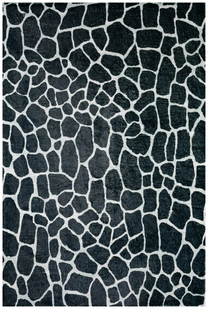 This 8' x 10' black animal print shag handmade non skid area rug, is a great way to add warmth to a room. This rectangle shaped rug features a animal print design in black to give it visual interest. A classic shape marries with good looking design for your space The coloration of this rug infuses an updated and modern vibe into your space. The retro shag construction of this luxurious rug will provide a soft and comfortable barrier to color tile and hardwood floors. Place this area rug against a hardwood or tile floor and it will enliven your living space with style and sophistication. 0.86" H x 96" W x 120" D