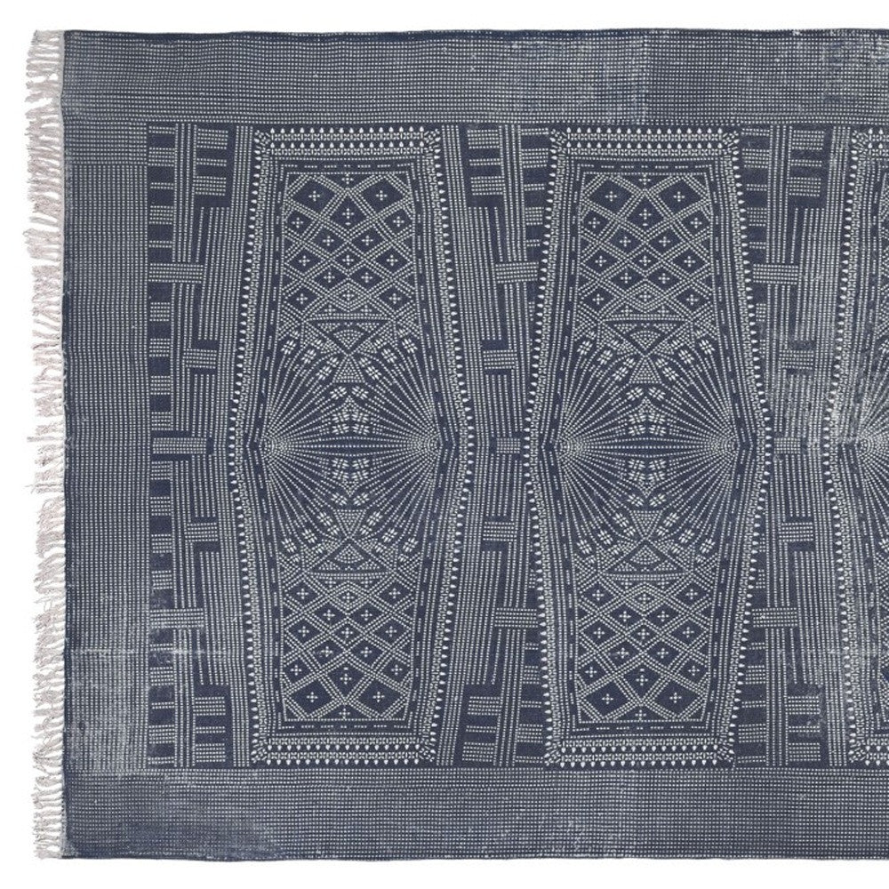 Influenced by cultures and traditional folk crafts, this Blue and Ivory Batik Area Rug emphasizes rich artworks and intricate patterns to be a stunning addition to any room. Blending in the two sophisticated color tones, this rug flaunts centuries-old handprinted batik designs in ivory brimming over a navy blue background for visual harmony. The unique process of masking dyes and printing patterns adds a traditional appeal to the entire piece. Skilfully crafted with cotton, this rug is very easy to clean and provides a comfortable feel under the feet. If you lean towards the richness of the traditional styling, this alluring area rug will be a worthy addition to uplift the aesthetics of your interior. 0.25” x 120” x 96”