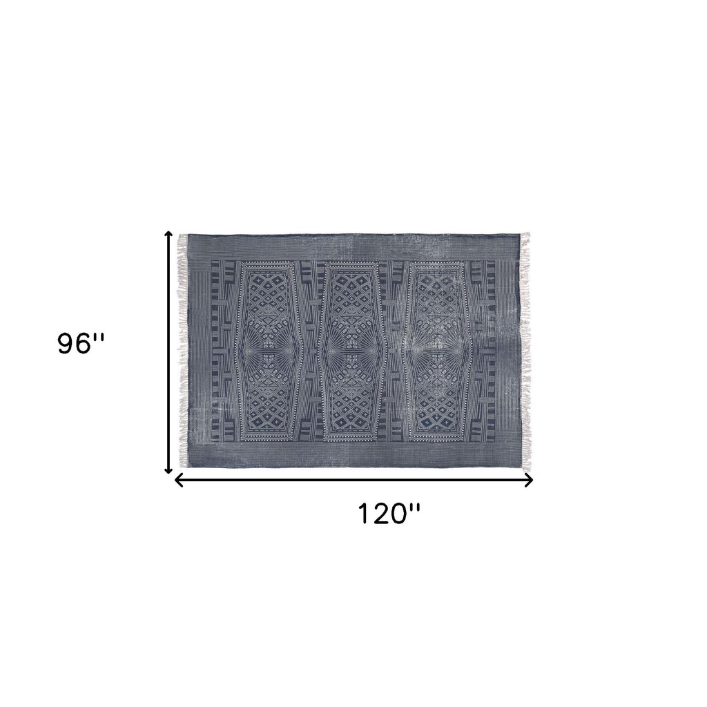 8’ X 10’ Blue And Ivory Batik Area Rug