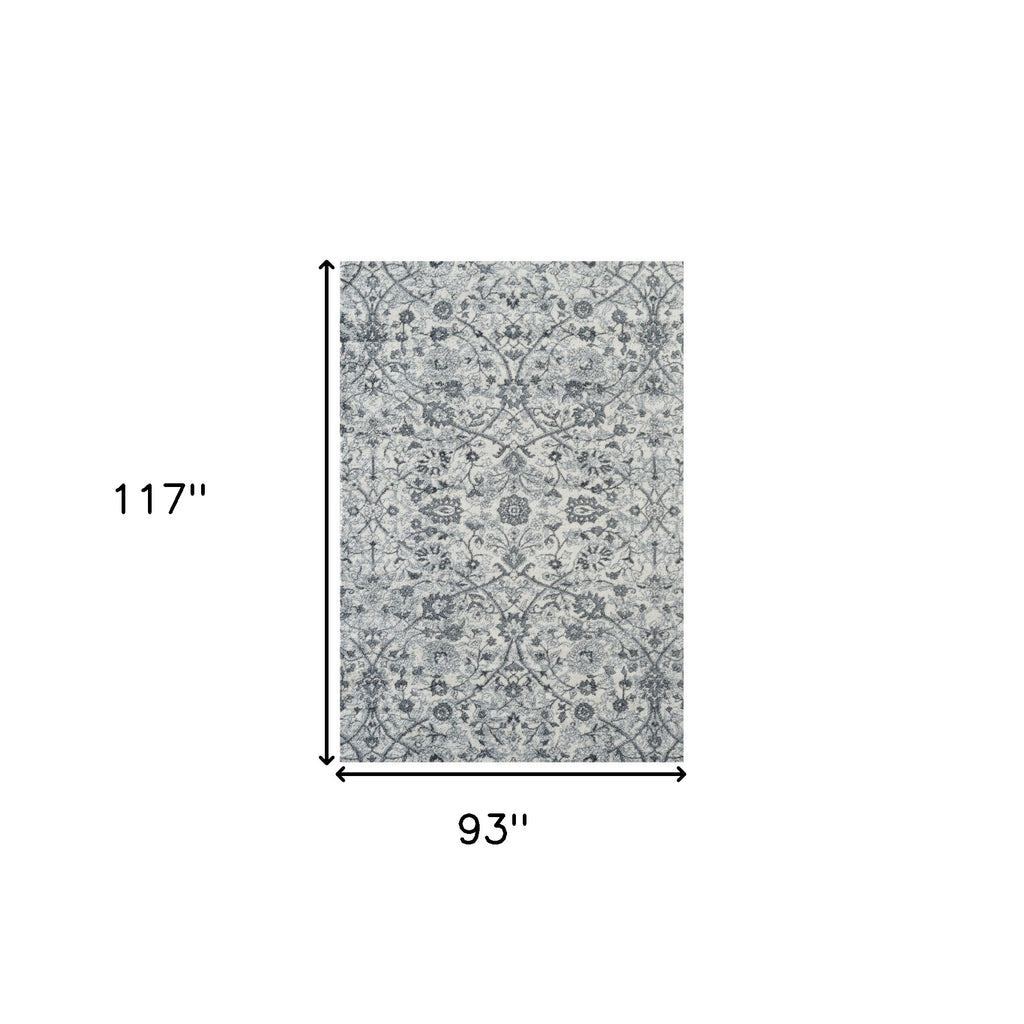 8' x 10' Blue and Ivory Oriental Power Loom Area Rug